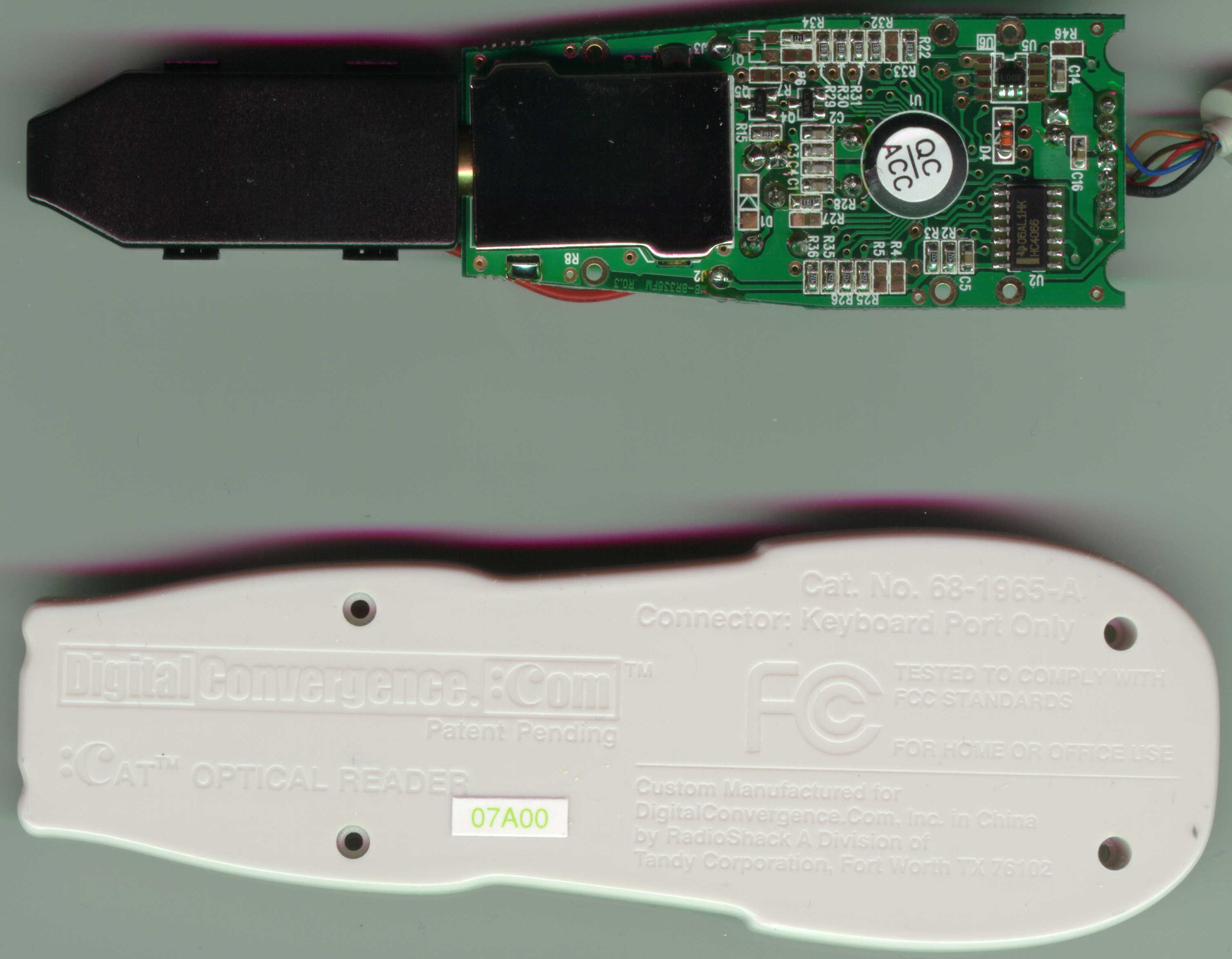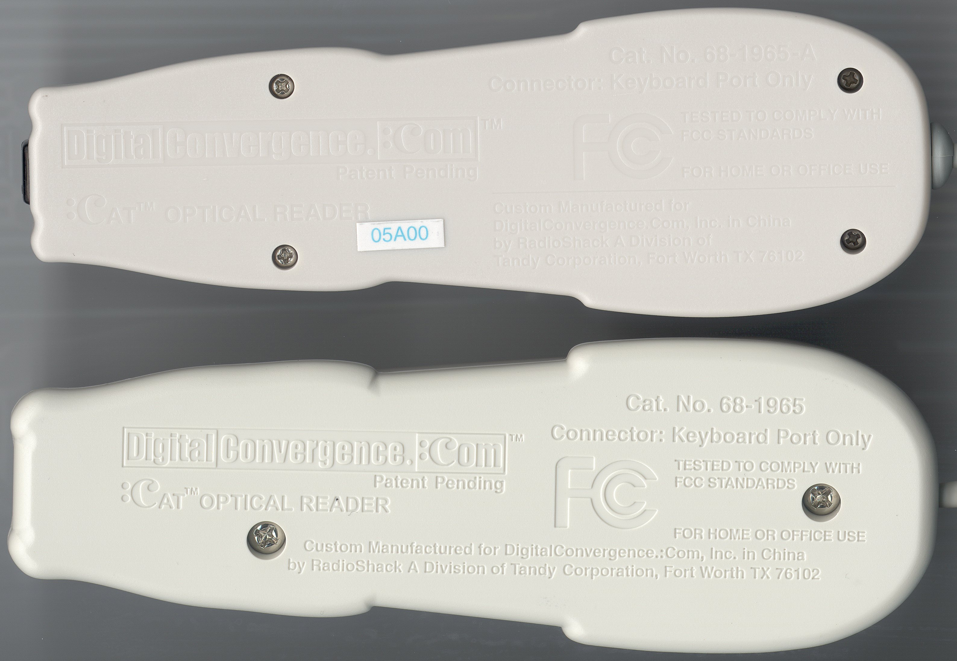 Undersides of CueCats - 68-1965-A on top, 68-1965 on bottom