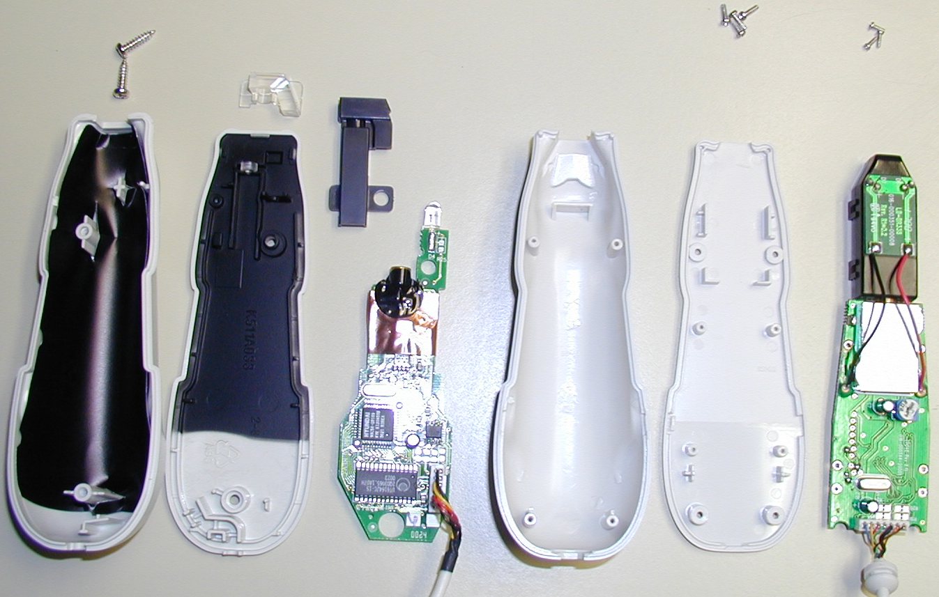 that the serial ID field is 18 characters long (or 9 16-bit words). I wonder if they're hiding anything nifty in the other 55 words? And why did they use a serial EEPROM? I would think that something like Dallas Semiconductor's silicon serial number would be a smaller, cheaper, totally non-volatile alternative, but maybe this gives DC better control over assigning IDs (perhaps there's a 'special' bar code that can be scanned in to rewrite the EEPROM?). I'm glad they used a 93LC46, though - you can desolder them and use them for other stuff...