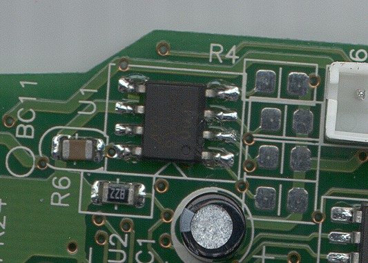 The component that caught my eye was this small 8-pin device (U1) on the top side of the board: