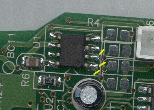 Cuts from top to bottom disable the DI (data in), SK (clock), and CS (chip select).