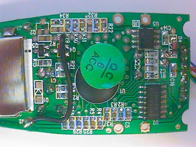 chip, a S93C46DV03. By removing the shorting "blobs", you will disconnect
